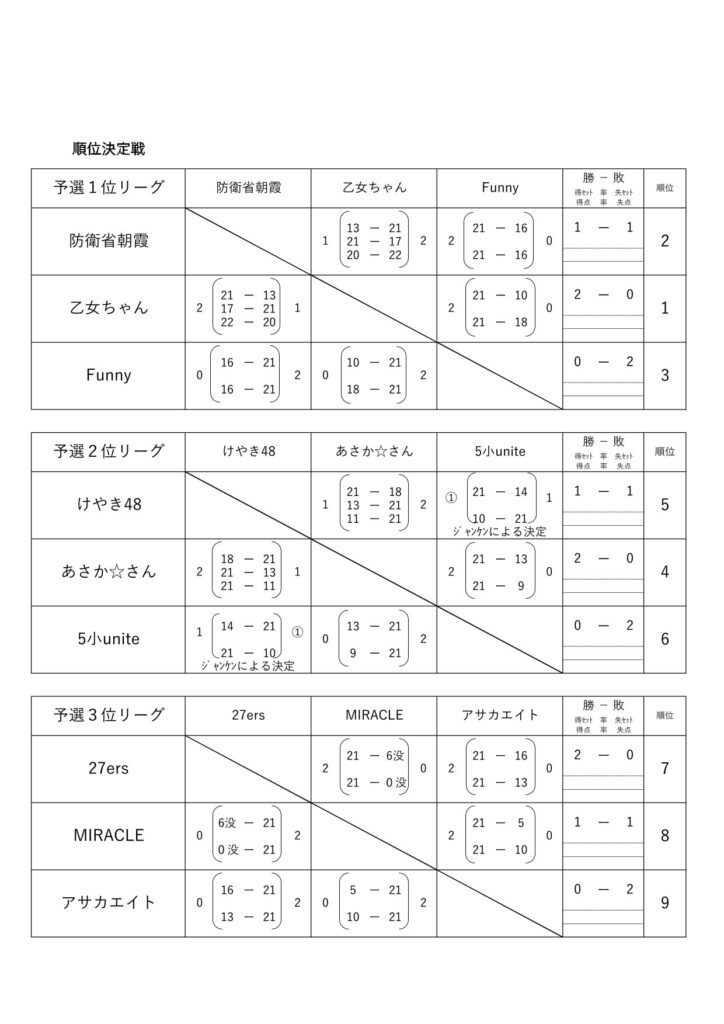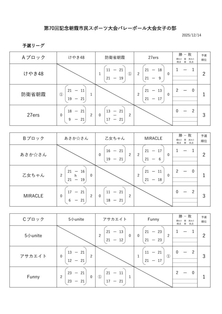 令和7年 第70回記念朝霞市民スポーツ大会バレーボール女子の部 結果