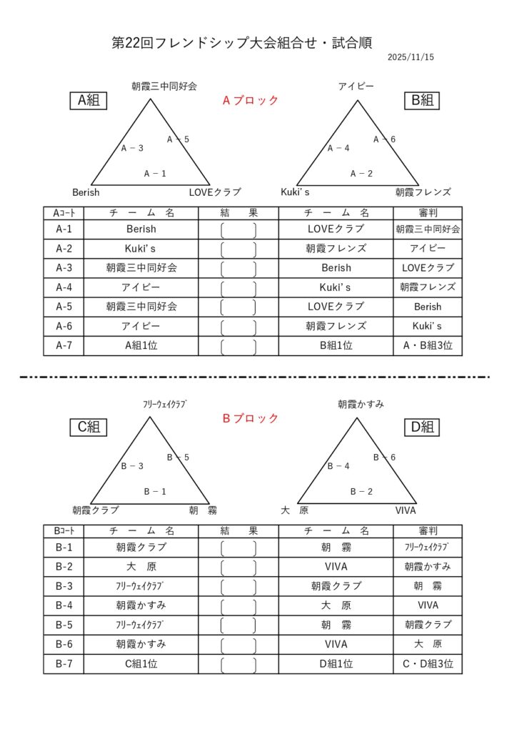 • 第22回 朝霞市フレンドシップ大会 組み合わせ